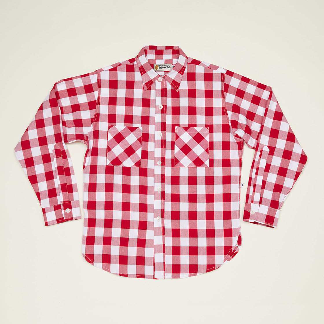 Regular collar work shirt made of 100% cotton yarn dyed plaid. Plain style from the work shirts in the 50s with regular collar and simple double front pockets. Ordinary casual is the concept behind this 50s work shirts. French seam is used for construction. Gusset are used at both side seam.