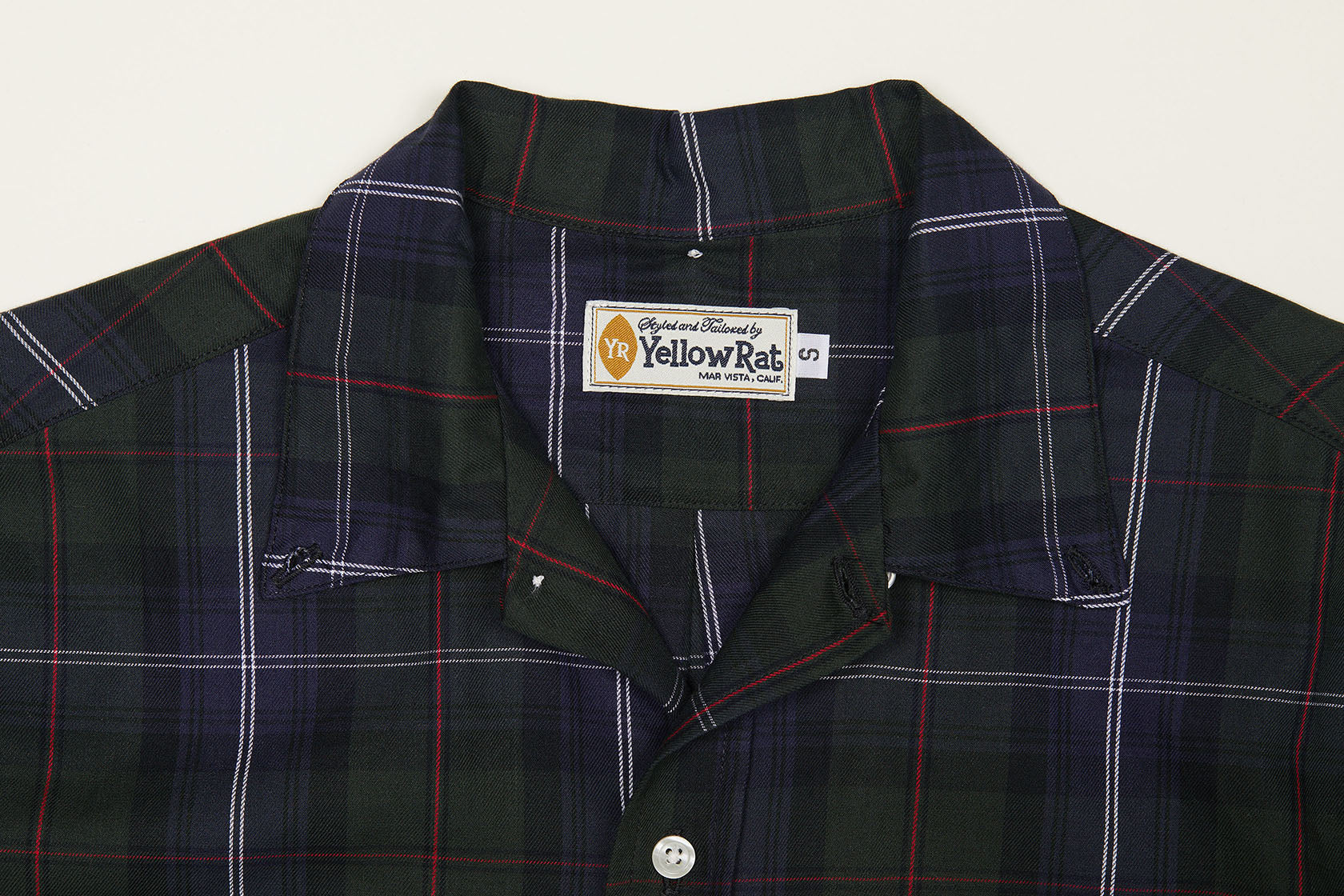 Convertible collar button-down shirt made of 100% cotton yarn dyed plaid. A unique combination of traditional button-down and a retro-style convertible collar. Left chest pocket. You'll have no problem spotting this shirt in many surf movies from the 50s. Perfectly matches peg-top and blue jeans.
